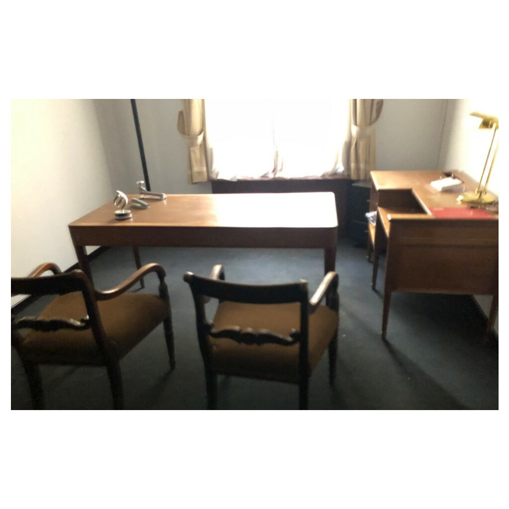 1 MESA DE EPOCA, 1CONSOLA, 2 SILLAS CONFIDENTE Y 2 SILLAS EMPLEADO EPOCA. Mobiliario disponible del inventario en Salamanca. Tendremos que pasar datos con al menos 48 hrs de antelacion para gestionar la recogida.
