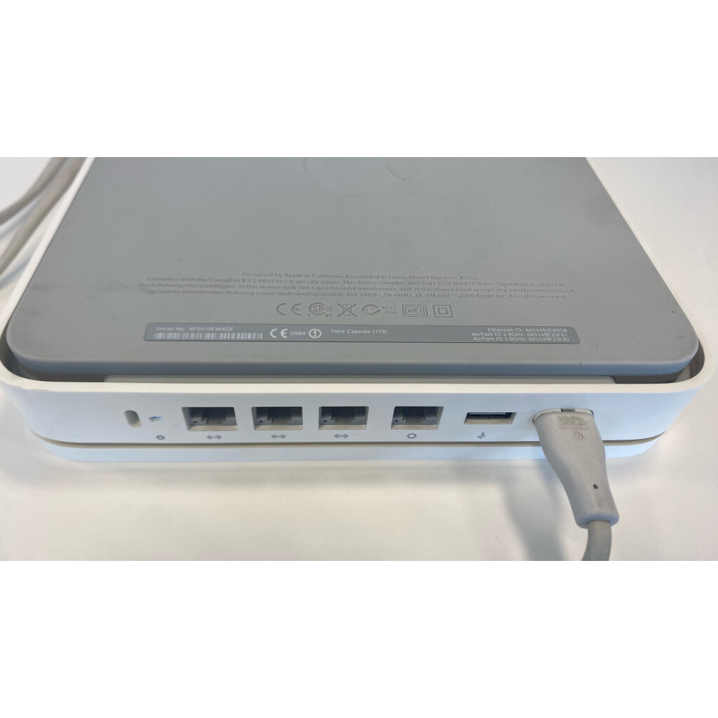 Apple AirPort Time Capsule (dispositivo de almacenamiento para copias de seguridad a través de Wi-Fi) combina: almacenamiento interno (disco duro) copias de seguridad automáticas con Time Machine en Mac Tiene 1 TB Modelo A1355
