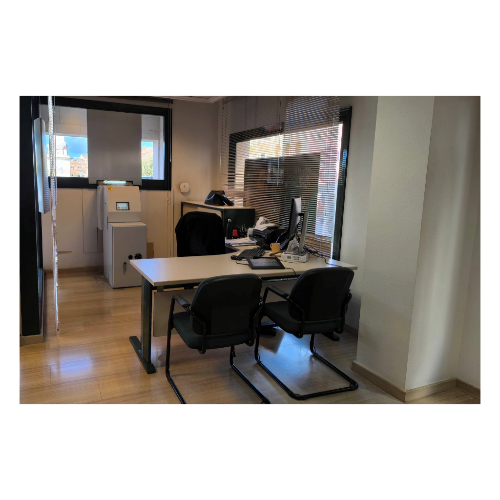 La mesa de dirección es de 200cm de largo de imagen verde-beige.