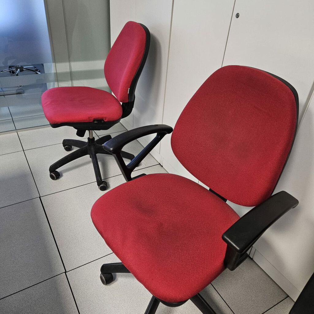 Sillas de oficina rojas con ruedas, con y sin brazos