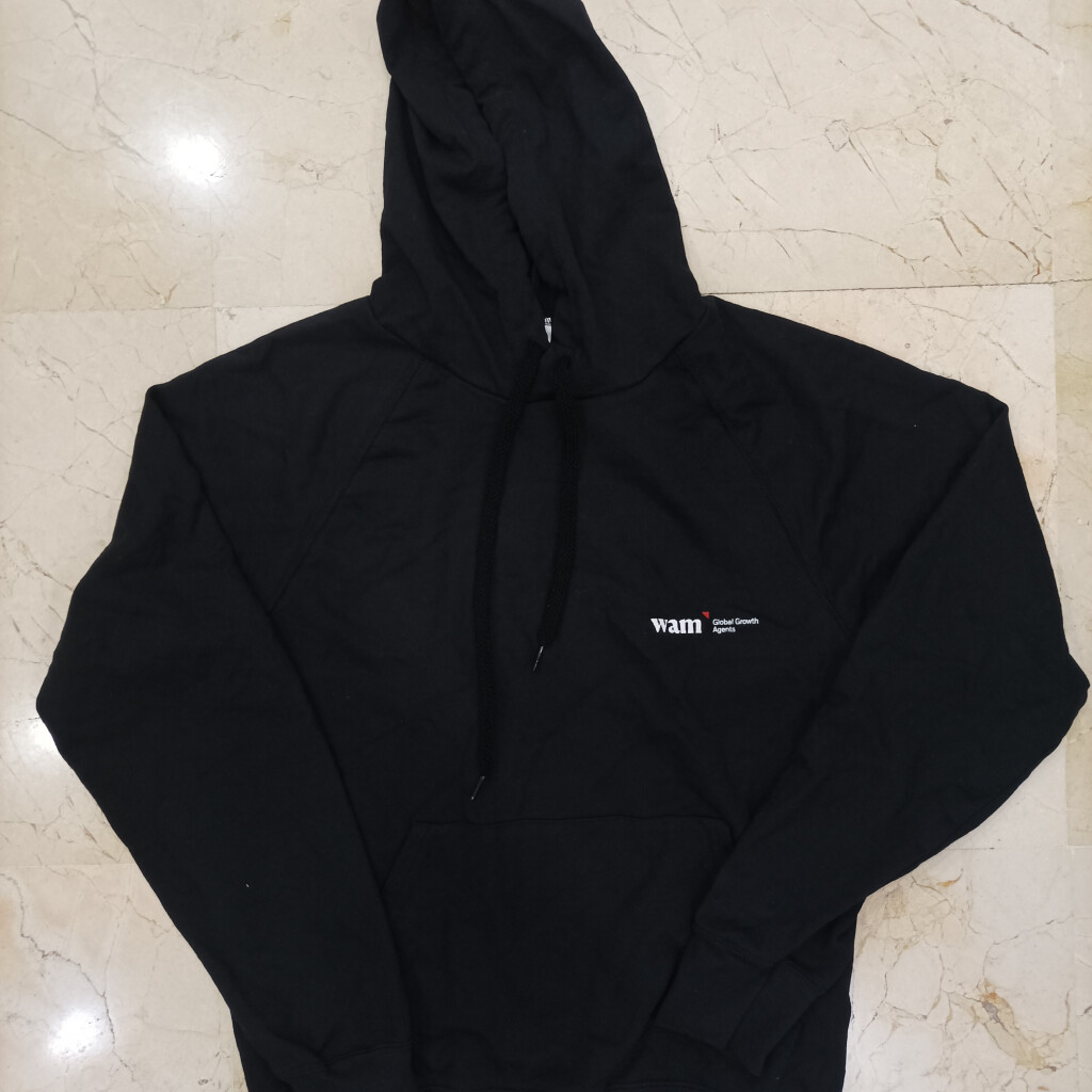 Son 3 sudaderas con capucha negra, de diferentes tallas
